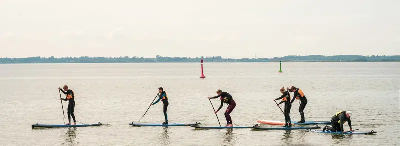 I 2023 introducerede SHORES-partneren SUPLangeland en ugentlig SUP-dag i sommerhalvåret, hvor børnene lærte at stå på paddleboard og begå sig på vandet.